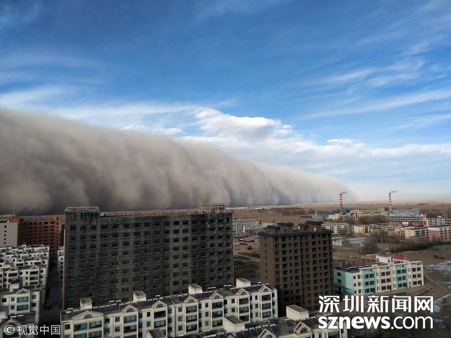 甘肅張掖沙塵暴來襲 “沙墻”高達上百米