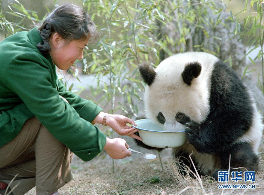 新華社記者金勖琪1984年拍攝的四川平武縣林業(yè)局的助理工程師鐘肇敏(左)一家把一頭受病餓威脅的熊貓幼仔“龍龍”收留在家里精心喂養(yǎng)。大熊貓,古老的物種,世界級“萌寵”。有一位84歲的老人,四十年前曾身挎相機與熊貓親密接觸六年多,公開發(fā)表了一千多張熊貓照片,把熊貓介紹給全球的讀者,被國內(nèi)外的朋友親切地稱為“熊貓小姐”。她就是金勖琪,新華社第一代熊貓攝影師。新華社記者 張超群 攝