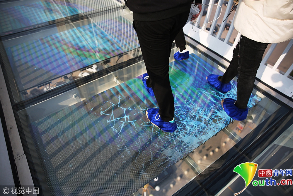 石家莊市區(qū)玻璃橋走紅 踩上去有破裂特效聲