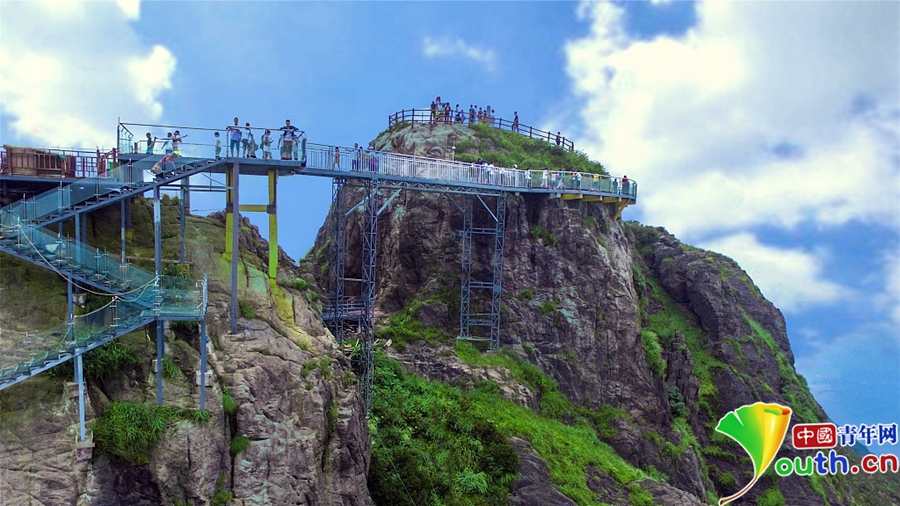 經(jīng)過一年的建設(shè),位于素有“嶺南第一險(xiǎn)峰”與“南粵小華山”之稱的廣東清遠(yuǎn)連山金子山,有一條玻璃天梯建成。下個(gè)月10日,玻璃天梯將正式對(duì)游客開放。