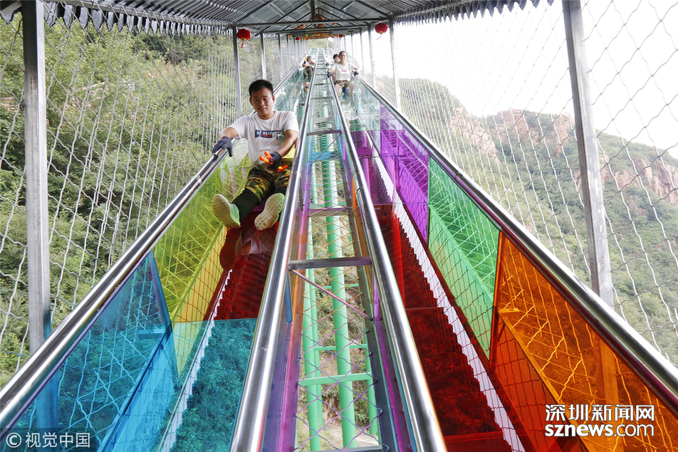 深圳新聞網(wǎng)訊 2018年8月11日,鄭州,雙排高空玻璃滑道亮相伏羲山三泉湖景區(qū),整條滑道從高空俯視,呈龍形蜷曲姿態(tài)俯臥于玫瑰嶺下,與中原第一鳳凰天橋首尾相接。