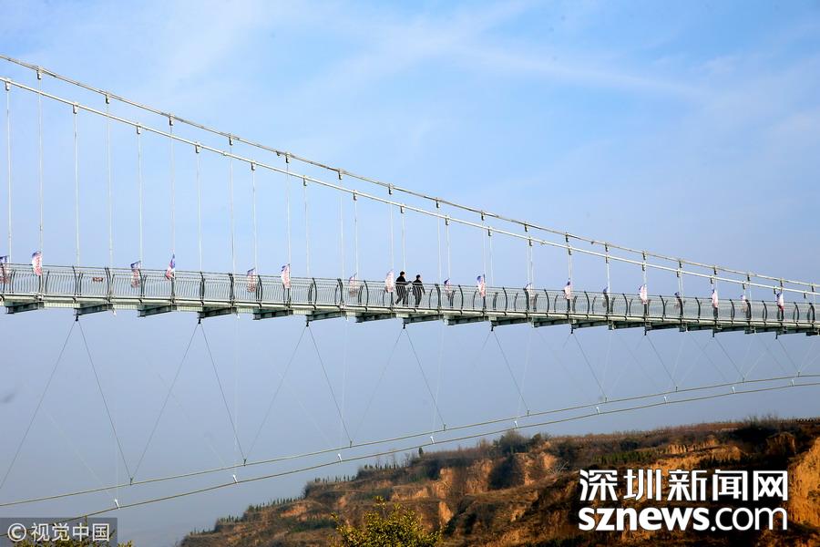 深圳新聞網(wǎng)訊 河南三門峽,位于陜州地坑院景區(qū)玻璃天橋。該項(xiàng)目橋梁總投資2600萬元,全長(zhǎng)368米,寬3米,高108米,是目前河南省內(nèi)最長(zhǎng)的玻璃天橋,還將陸續(xù)對(duì)外開放夜景效果、聲光效果以及更多的體驗(yàn)效果,逐步打造成整個(gè)豫西地區(qū)乃至全省的旅游打卡新地標(biāo)。