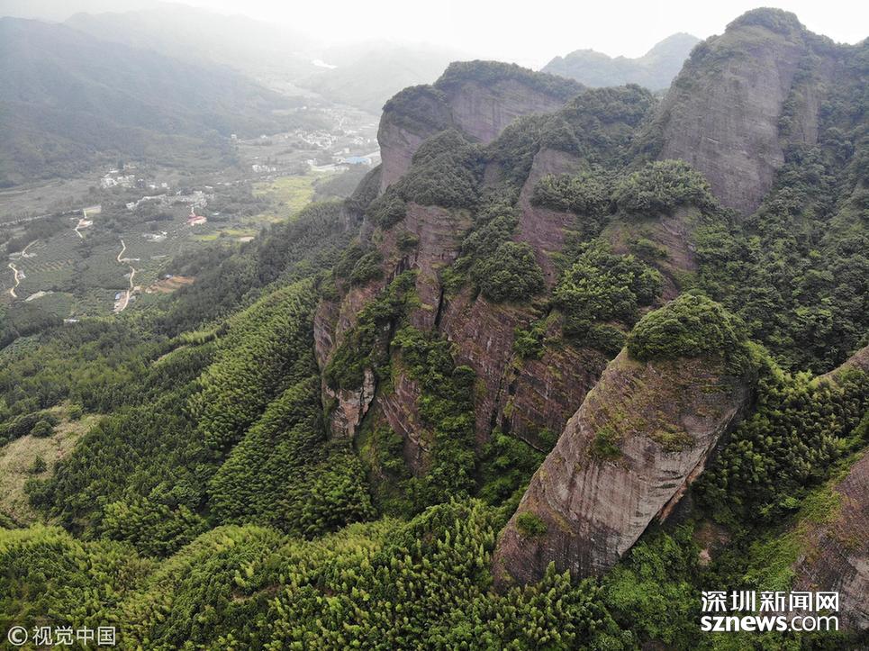 航拍位于贛粵兩省交界處的江西南武當山。 南武當山擁有99座千姿百態(tài)的巍峨石峰,丹霞地質風貌突出,連綿十里,被稱為“武當十里畫廊”。