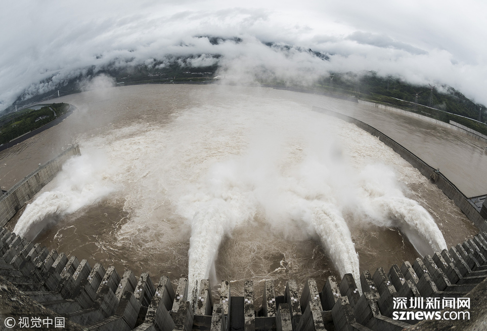 深圳新聞網(wǎng)訊 2018年7月5日,三峽大壩今年首次開閘泄洪。當(dāng)天,三峽大壩開啟5個泄洪孔下泄洪水,至中午12點(diǎn)左右減至2個。