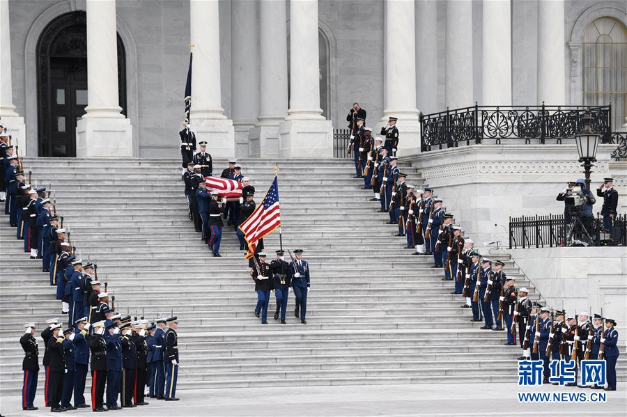 12月5日,在美國首都華盛頓,美國前總統(tǒng)喬治·赫伯特·沃克·布什的靈柩離開國會(huì)大廈。
