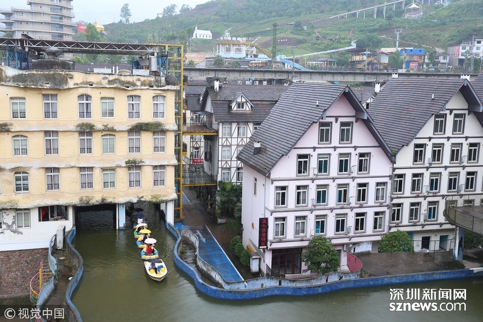 2018年6月20日,重慶涪陵,紅酒小鎮(zhèn)人工運河全長近5公里,2009年開建,先期依梨香溪岸線而建,后期隨著景區(qū)的發(fā)展,運河逐漸拓展為高架橋的“空中運河”,穿樓而過的“室內運河”,穿水上樂園而過的“水中運河”。為確保一個水平面,運河見房穿洞,過路搭橋,游客乘坐觀光船或蕩舟其中成為一道獨特的風景線。隨著8D魔幻重慶的不斷走紅,該景區(qū)的網紅運河正受到游客的喜愛與“打卡”。