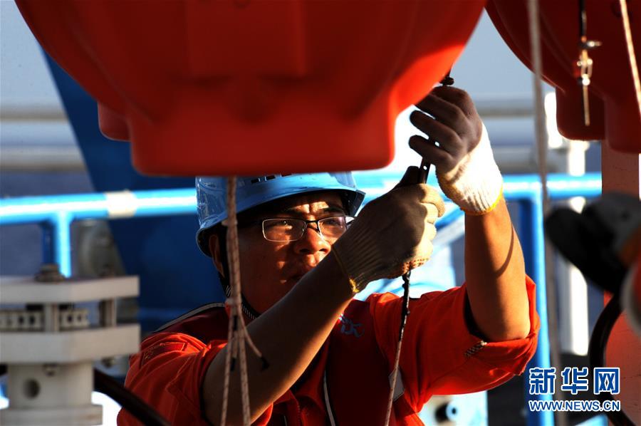 考察隊(duì)員在布放“彩虹魚”著陸器前進(jìn)行檢查工作(12月10日攝)。 由上海海洋大學(xué)和西湖大學(xué)聯(lián)合組成的“彩虹魚”科考團(tuán)隊(duì),12月11日在全球最深的海溝——馬里亞納海溝成功完成兩臺“彩虹魚”第二代著陸器的萬米級海試,深度分別為10918米和10899米。 新華社記者 張建松 攝