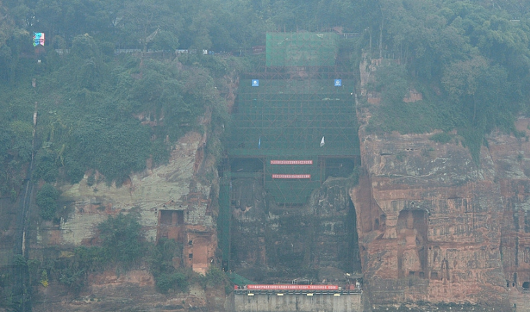 樂(lè)山大佛本體已全遮蔽 胸腹開(kāi)裂病害 ...