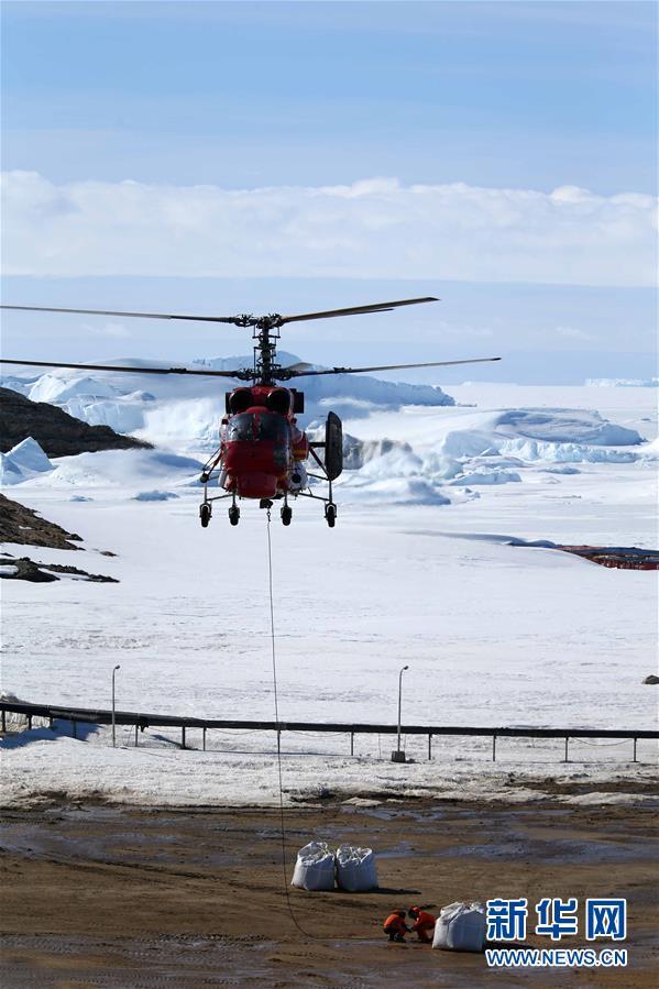 12月14日,直升機向南極中山站吊運物資。