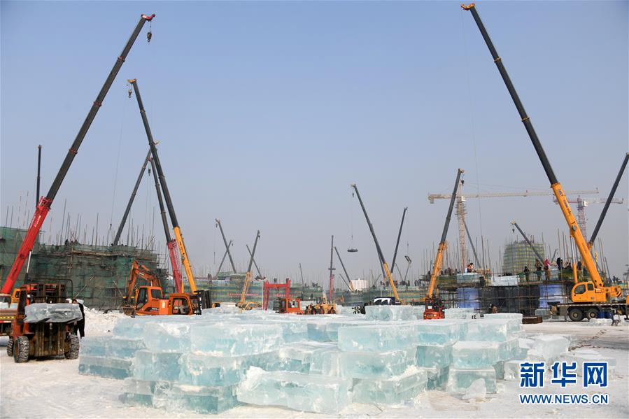 目前,以“筑夢(mèng)冰天雪地,共享金山銀山”為主題的第二十屆哈爾濱冰雪大世界正在施工,現(xiàn)場(chǎng)一片繁忙景象。 新華社記者 王建威 攝