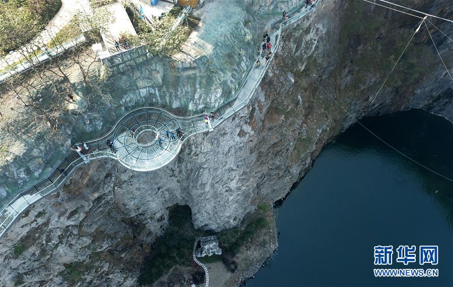 12月18日,游客在樂園內(nèi)的玻璃棧道上行走(無人機拍攝)。 當日,“世茂精靈之城主題樂園奇幻親子嘉年華開幕暨上海公益基地揭牌儀式”在位于上海佘山國家旅游度假區(qū)的世茂精靈之城主題樂園一期(“深坑秘境”)正式啟動。“深坑秘境”毗鄰上海佘山世茂洲際酒店,除了擁有俯瞰“深坑”的玻璃棧道外,還包括360度崖壁大擺錘、精靈樹屋、沙漠考古、夢幻水域和蟲蟲世界等項目,帶來親子游玩新體驗。 新華社記者 方喆 攝