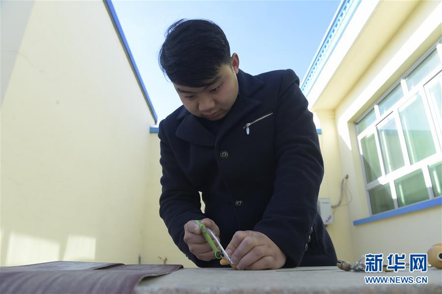 12月18日,劉征在自己的加工坊里加工葫蘆衍生品。  新華社記者 魯鵬 攝