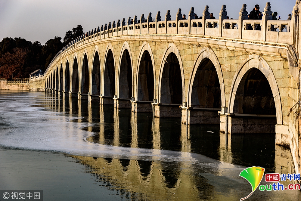頤和園昆明湖已經大面積結冰。
