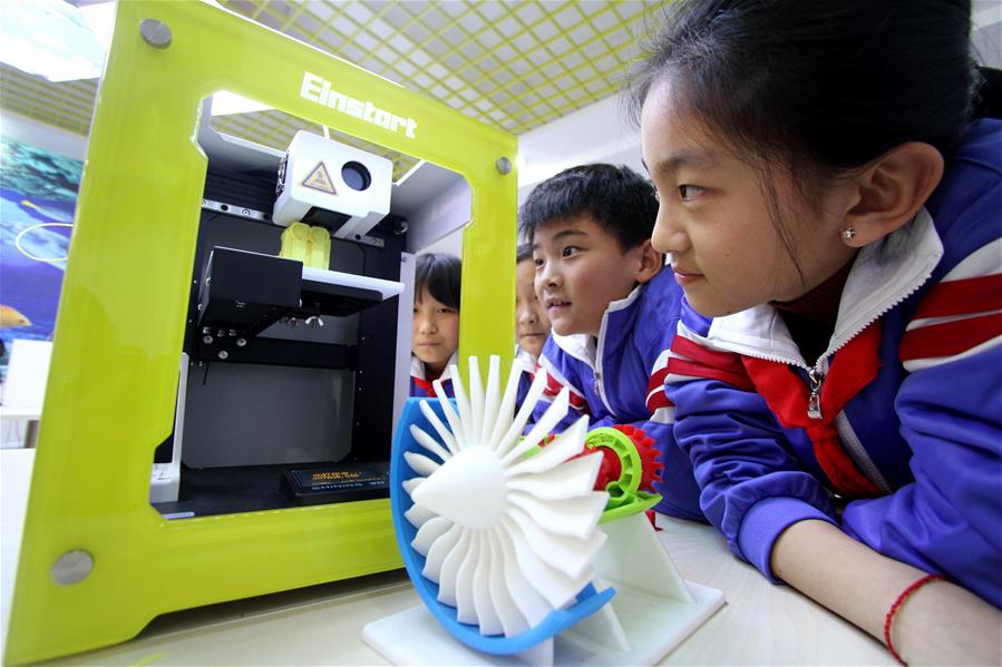 12月19日,武安市淑村鎮(zhèn)白沙學(xué)校的學(xué)生在3D打印課堂上打印自己設(shè)計(jì)的作品。