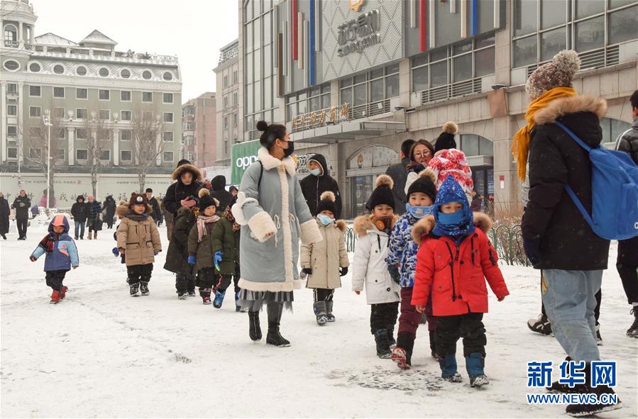 12月21日,游客在哈爾濱中央大街游覽。當(dāng)日,“冰城”哈爾濱迎來(lái)降雪天氣,整個(gè)城市變得銀裝素裹。新華社記者韓宇攝