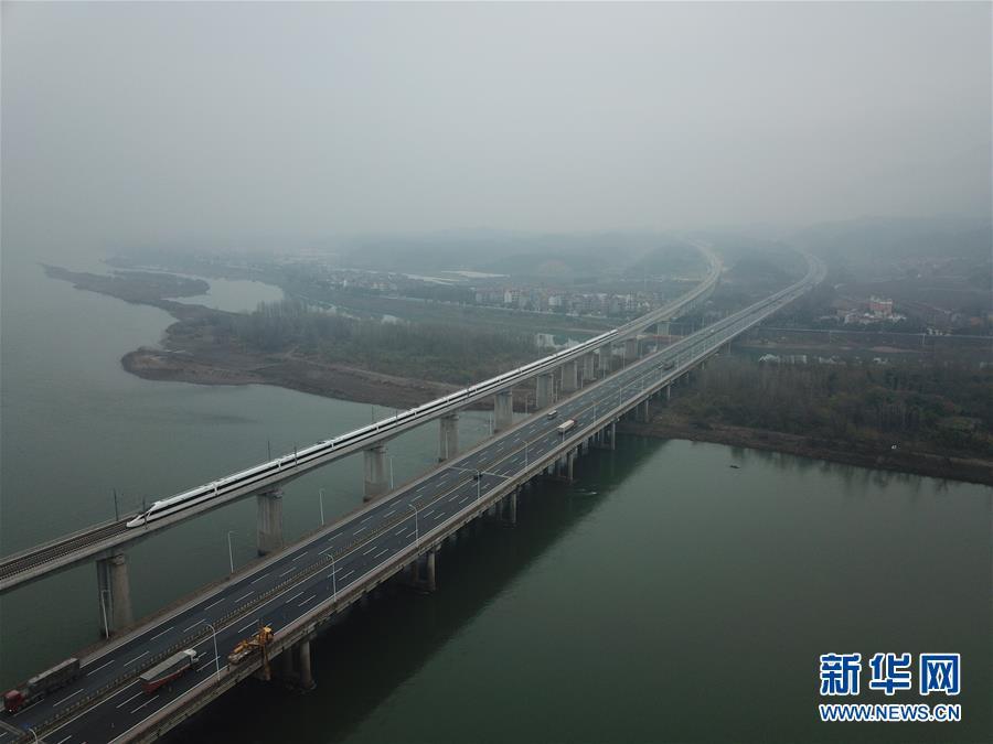 杭黃高鐵正式通車 12月25日,D9551次首發(fā)列車駛過富春江特大橋(無人機(jī)拍攝)。 新華社記者 邢廣利 攝