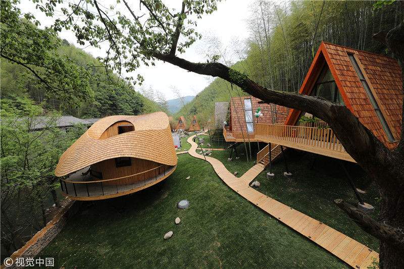 2018年4月22日,浙江寧波,樹蛙部落的特色房屋。張培堅(jiān)/視覺中國
