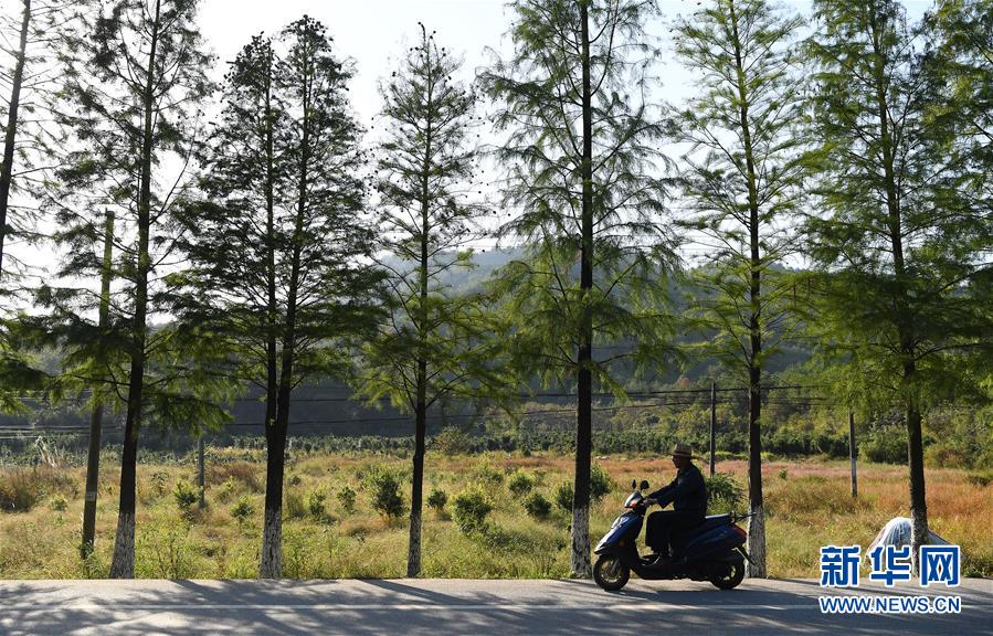 舒港發(fā)騎電動車到田里干農(nóng)活。他家種有楊梅和西洋參等農(nóng)作物(10月27日攝)。