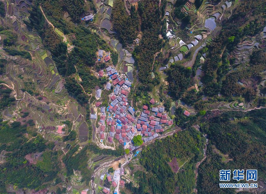 位于大苗山深處的烏英苗寨(3月27日無人機(jī)拍攝)。