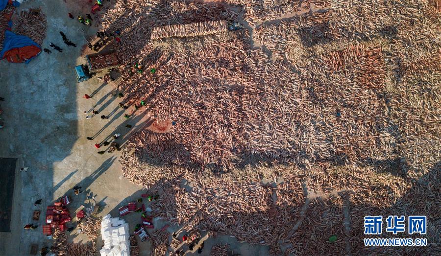 12月27日,在吉林松原查干湖漁場,工人們將魚裝箱(無人機拍攝)。 隨著吉林松原查干湖冬捕知名度不斷提高,全國各地消費者對查干湖魚的需求量逐年增大。2014年開始,多個電商平臺和快遞企業(yè)紛紛抓住商機進駐查干湖。經(jīng)過多年發(fā)展,借助互聯(lián)網(wǎng)銷售優(yōu)勢和日趨完善的快遞網(wǎng)絡,全國多地的百姓可以在魚出水后的48小時內(nèi)品嘗到查干湖魚的鮮美滋味。 新華社記者張楠攝