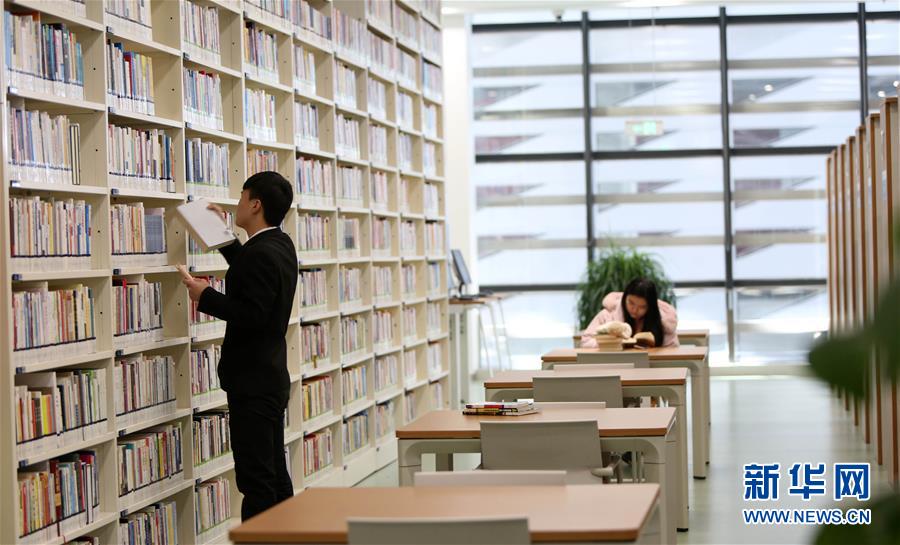 12月27日,在天津濱海新區(qū)圖書館,工作人員(左)在閱覽室中擺放圖書。 濱海新區(qū)圖書館位于天津濱海文化中心,2017年10月1日正式開館,設(shè)計立意為“濱海之眼”和“書山有路勤為徑”。圖書館現(xiàn)有藏書60多萬冊,一年多來接待讀者約280萬人次,已成為濱海新區(qū)的文化“新地標(biāo)”。 新華社記者伍婧丹攝