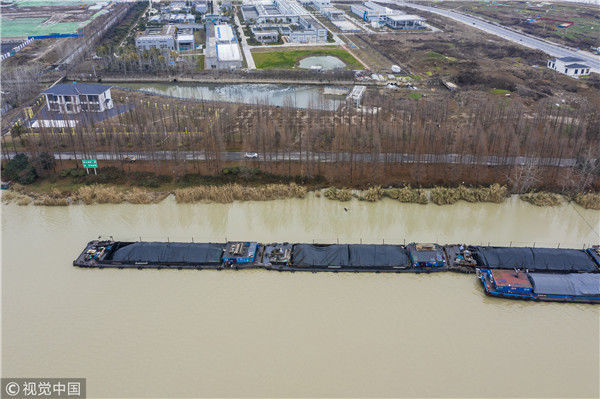 2018年12月27日,江蘇淮安,航拍京杭大運(yùn)河淮安段冬日景色。