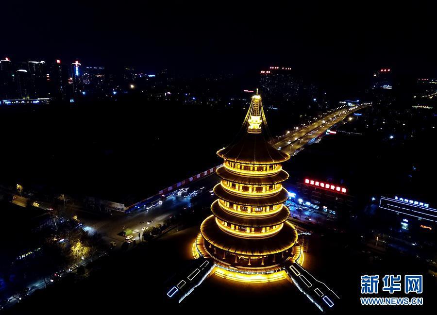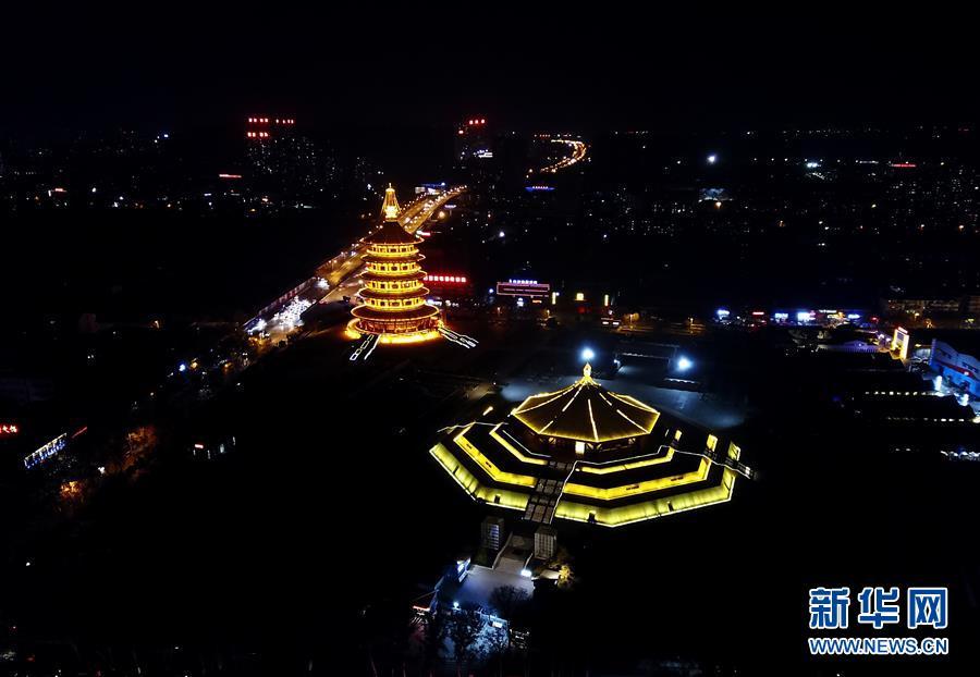 在古都河南洛陽(yáng)的夜色中,隋唐洛陽(yáng)城國(guó)家遺址公園內(nèi)的明堂和天堂兩棟古建筑格外閃耀。 新華社記者馮大鵬 攝