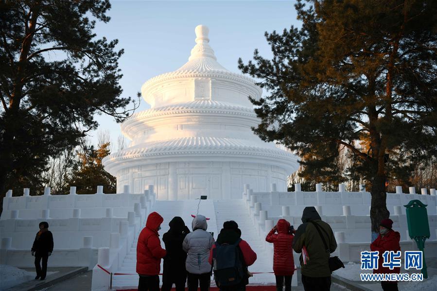 12月29日,游客在太陽島雪博會(huì)園區(qū)游玩。 當(dāng)日,第31屆哈爾濱太陽島國際雪雕藝術(shù)博覽會(huì)正式開園。本屆太陽島雪博會(huì)以“歡樂雪博會(huì)·夢幻雪域游”為主題,占地90萬平方米,分為五大景區(qū)。 新華社記者 王建威 攝