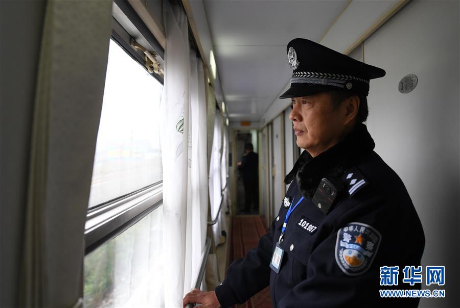 1月1日,在越南河內(nèi)(嘉林)開(kāi)往中國(guó)南寧的列車(chē)上,乘警楊鐵鳴注視著車(chē)外。 新華社記者陸波岸攝