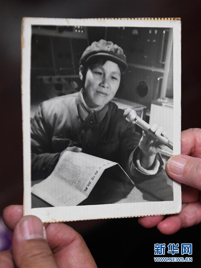 原“福建前線廣播電臺(tái)”廣播員陳菲菲當(dāng)年向金門(mén)播音的老照片。 新華社記者 姜克紅 攝