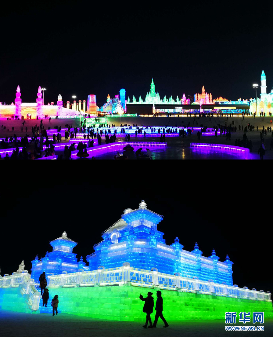 1月5日拍攝的冰雪大世界夜景 新華網(wǎng)記者 張明宇 攝