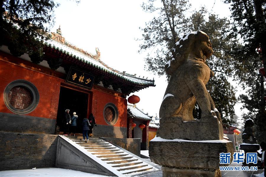 1月10日,游客在少林寺游覽。當日,雪后初霽,河南登封少林寺分外秀美。 新華社記者 朱祥 攝