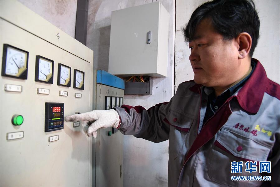 1月12日,孫云毅在展示他引入的電動(dòng)控溫設(shè)備,目前爐溫顯示1255攝氏度。 新華社記者王凱攝