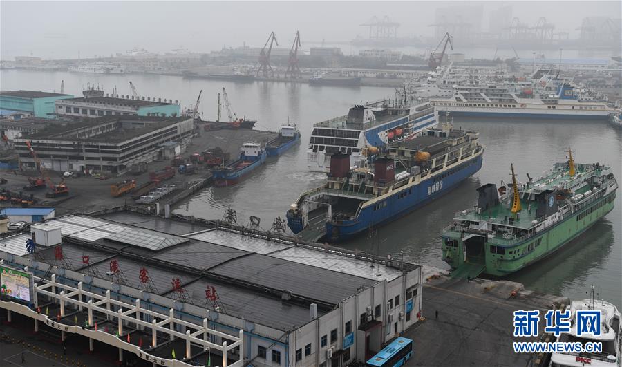 1月13日,一艘客滾船從??谛阌⒏垴偝?。 新華社記者楊冠宇攝
