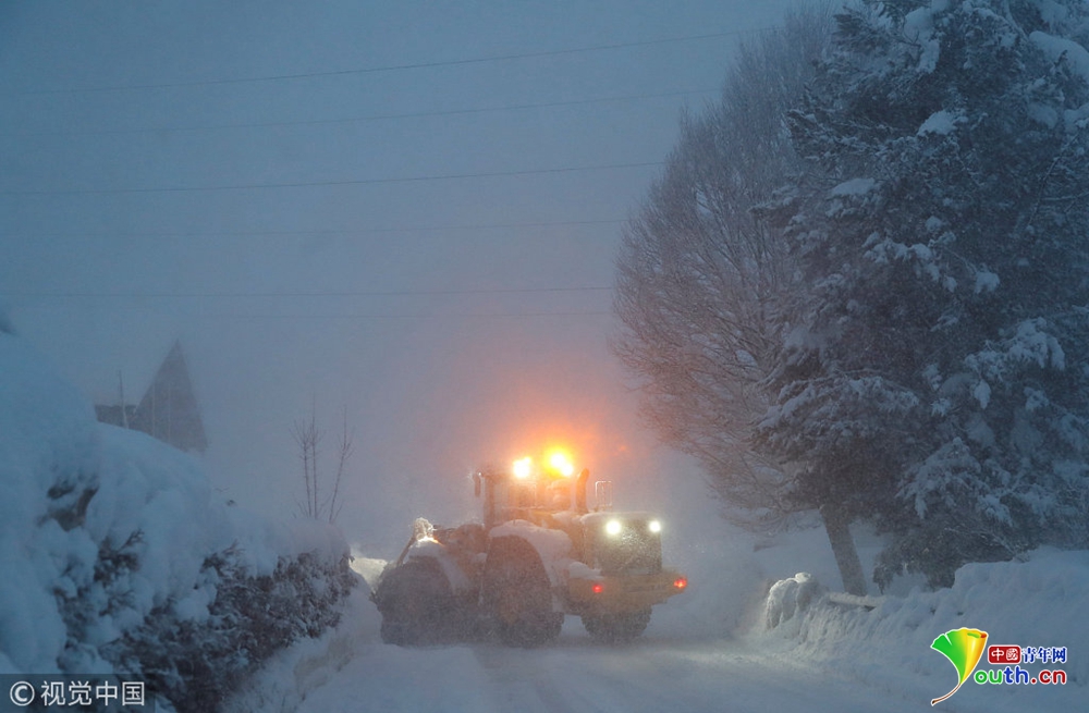 德國(guó)多地大雪紛飛 火車被困半路進(jìn)退不得