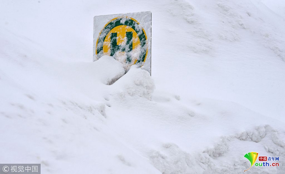 當(dāng)?shù)貢r(shí)間2019年1月14日,奧地利Reitdorf,當(dāng)?shù)卦庥霰╋L(fēng)雪襲擊,公交車站被積雪掩埋。