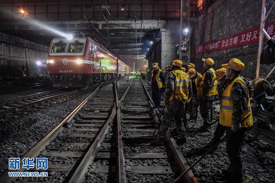 1月15日凌晨,中鐵十一局施工人員在西安站改現(xiàn)場(chǎng)等待列車通過(guò),準(zhǔn)備進(jìn)行施工。新華社記者陶明攝