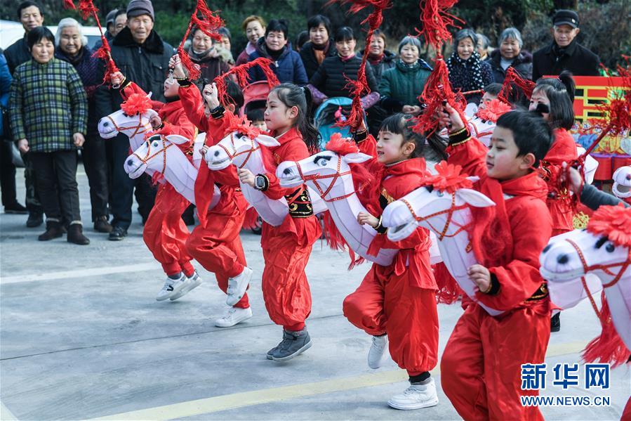 1月16日,孩子們?yōu)樾绿链宕迕癖硌輦鹘y(tǒng)非遺項(xiàng)目——下箬馬燈。下箬馬燈是發(fā)源于長(zhǎng)興縣的民間舞蹈,距今已有1000多年歷史。 臨近春節(jié),浙江省長(zhǎng)興縣開(kāi)發(fā)區(qū)中心幼兒園的老師和孩子們來(lái)到長(zhǎng)興縣太湖街道下屬的新塘村,為村民表演文藝節(jié)目,用喜慶的傳統(tǒng)舞蹈營(yíng)造節(jié)日氣氛。另外孩子們還用紙盒、瓶子、彩色包裝紙等廢舊物品制作了環(huán)?;簦徒o村民,倡導(dǎo)低碳環(huán)保的節(jié)日新風(fēng)。 新華社記者 徐昱 攝