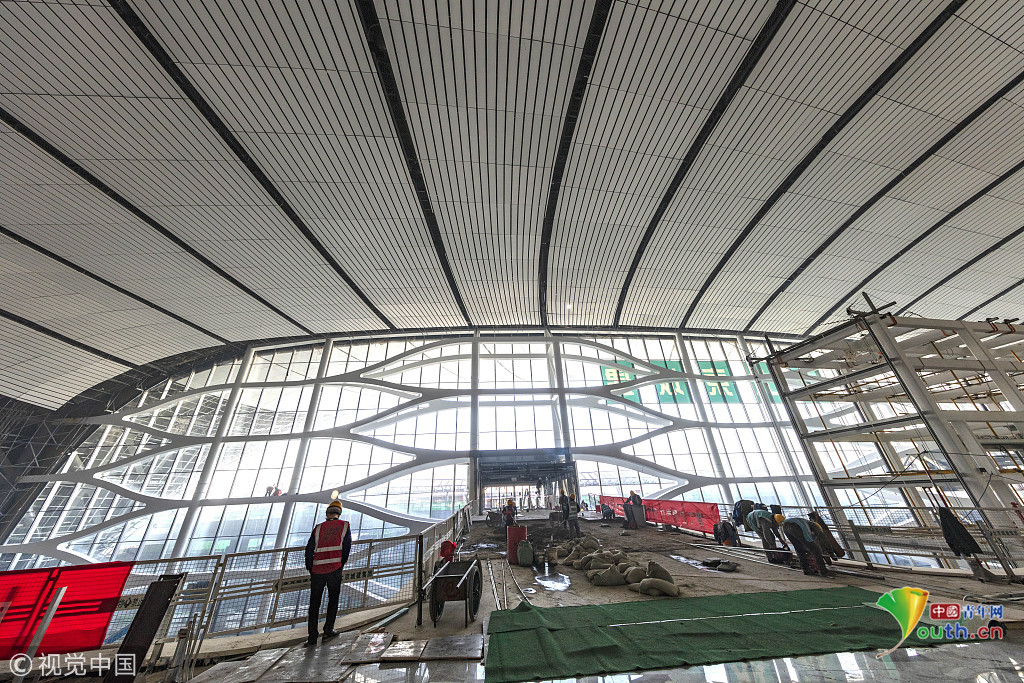 2018年12月19日,北京大興國(guó)際機(jī)場(chǎng)航站樓的室內(nèi)裝修場(chǎng)景。視覺(jué)中國(guó)