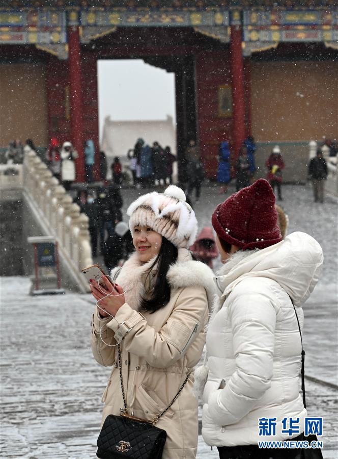 2月14日,游客在北京故宮游覽。 當日,北京降雪,大批游人來到故宮游覽賞雪。 新華社記者 金良快 攝