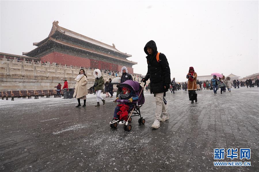 2月14日,游客在雪中游覽北京故宮。 當日,北京降雪,大批游人來到故宮游覽賞雪。 新華社記者 金良快 攝
