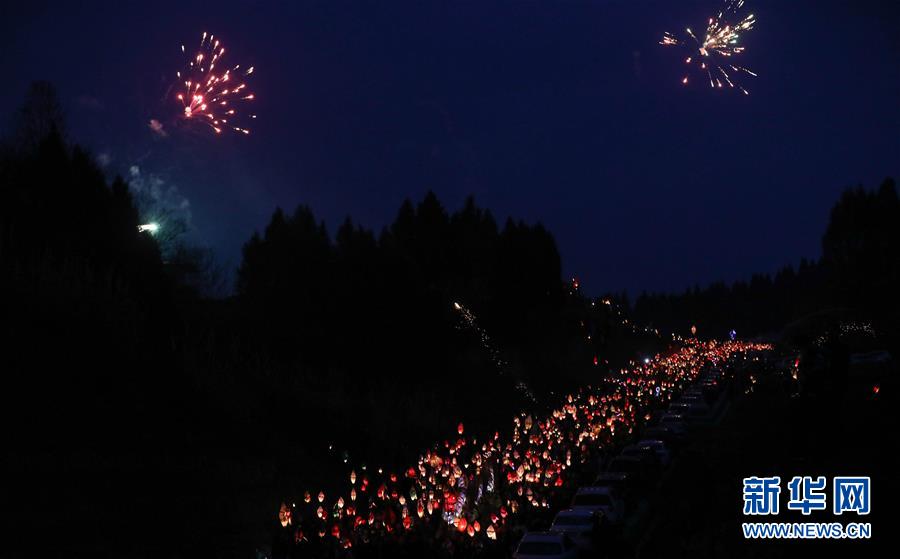 2月18日,群眾在四川省南充市嘉陵區(qū)金寶鎮(zhèn)點(diǎn)亮“蠐蟆燈”。 當(dāng)日是農(nóng)歷正月十四,夜幕降臨后,川渝等地?cái)?shù)萬名群眾在四川省南充市嘉陵區(qū)金寶鎮(zhèn)匯聚,點(diǎn)亮“蠐蟆燈”,敲著鑼鼓唱著歌謠,將“蠐蟆”送到幾公里外的田邊或者河邊燒掉,祈福健康平安。星星點(diǎn)點(diǎn)的燈光在鄉(xiāng)間小路閃爍移動(dòng),場(chǎng)面壯觀熱烈。 “送蠐蟆”祈福這一習(xí)俗源于清朝,歷經(jīng)演變成為川東北地區(qū)一個(gè)古老而神秘的地方民俗節(jié)日。 新華社記者 江宏景 攝