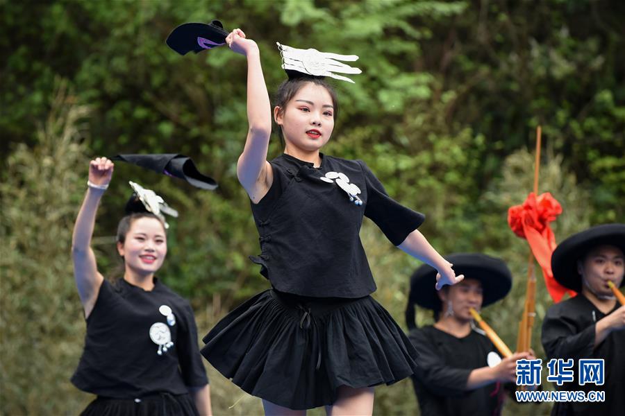 苗族群眾在跳木鼓舞和吹蘆笙(4月6日攝)。4月6日至7日,在貴州省黔東南苗族侗族自治州劍河縣觀么鎮(zhèn)新民村和新合村,來自劍河縣和三穗縣的苗族同胞歡聚一堂,通過民族歌舞展演、非遺手工藝展示、千戶祭“巫耶”、跳蘆笙舞等形式,與來賓一起歡慶2019年高雍苗族“三月三”民俗文化節(jié)。 新華社記者 楊文斌 攝