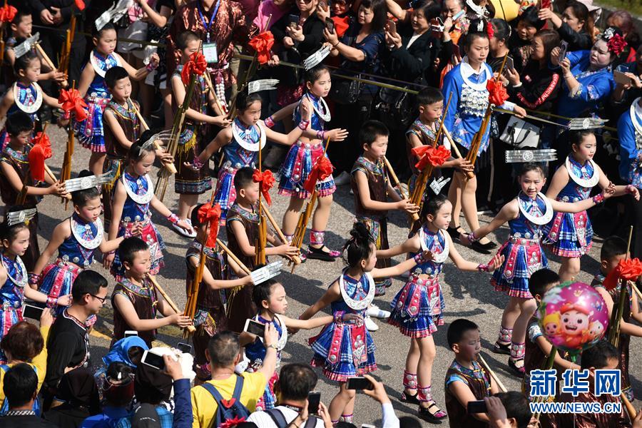 4月18日,臺江縣苗族群眾參加盛裝游演活動。 當日,貴州省黔東南苗族侗族自治州臺江縣迎來一年一度的苗族姊妹節(jié)。節(jié)日期間將舉行苗族盛裝游演、千人長桌宴、千人游方體驗、苗族手工創(chuàng)意大賽等一系列活動。 姊妹節(jié)是臺江縣苗族同胞的傳統(tǒng)節(jié)日,2006年被列入第一批國家級非物質(zhì)文化遺產(chǎn)名錄。 新華社記者 楊文斌 攝