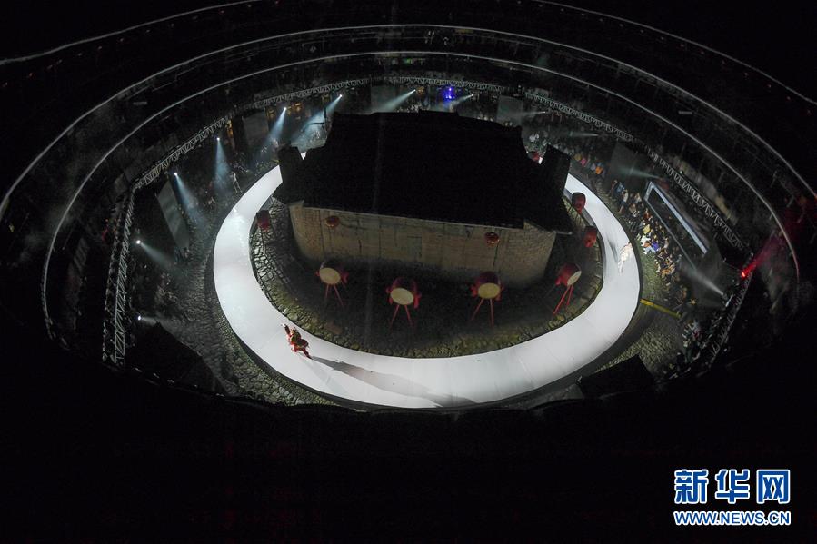 4月27日,模特在位于福建省南靖縣的土樓裕昌樓展示服飾。 當(dāng)日,土樓光語國際時(shí)尚大秀在福建省南靖縣的土樓裕昌樓內(nèi)舉行。這場融匯文化、時(shí)尚與旅游元素的大秀,通過傳統(tǒng)與時(shí)尚的有機(jī)融合,展現(xiàn)南靖土樓及文化的魅力和風(fēng)采。 新華社記者 宋為偉 攝
