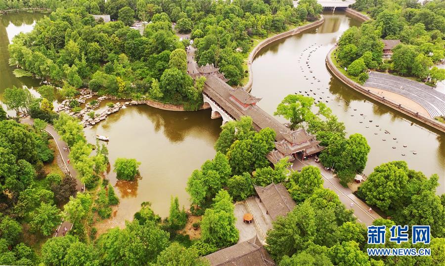 這是5月1日無人機(jī)拍攝的重慶璧山觀音塘濕地公園景象。