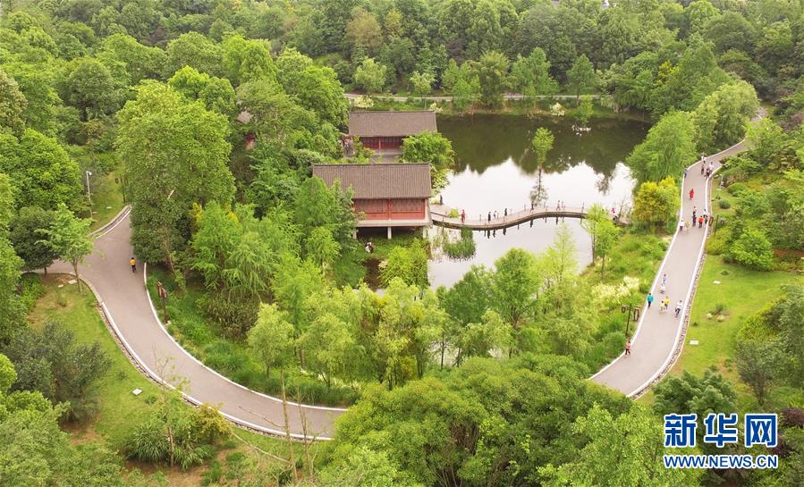 這是5月1日無(wú)人機(jī)拍攝的重慶璧山觀音塘濕地公園景象。新華社記者 王全超 攝