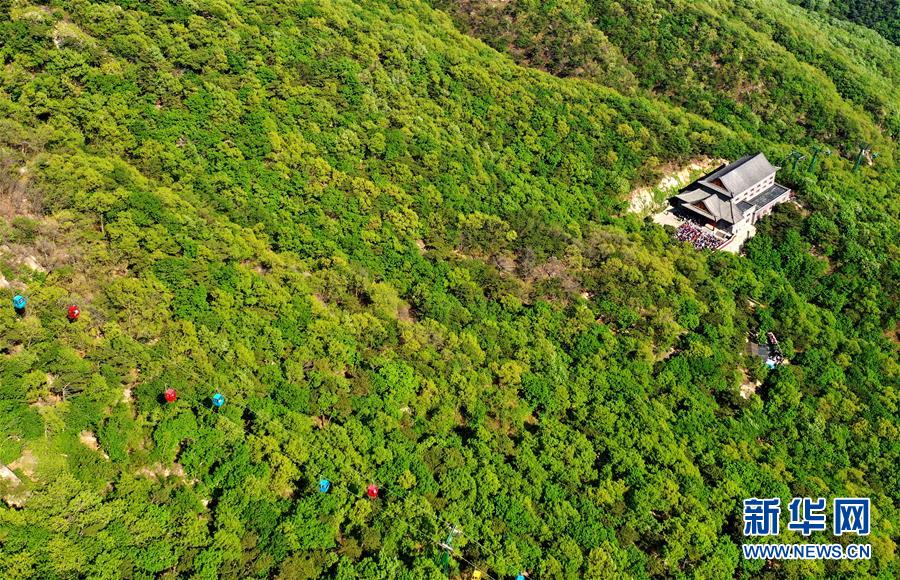 一處建筑坐落在盤山風景名勝區(qū)的森林中(5月2日無人機拍攝)。新華社記者 岳月偉 攝