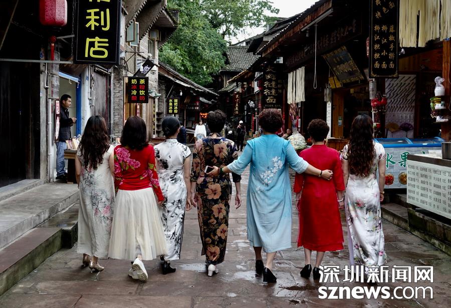 古鎮(zhèn)拍照的游客  李仁奇  攝