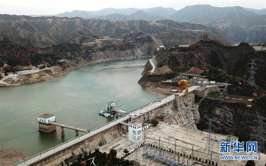 這是10月24日無人機(jī)拍攝的劉家峽水庫大壩。 新華社記者 陳斌 攝